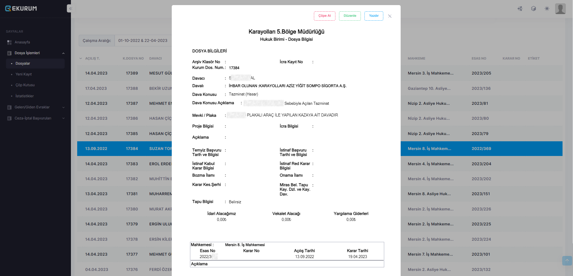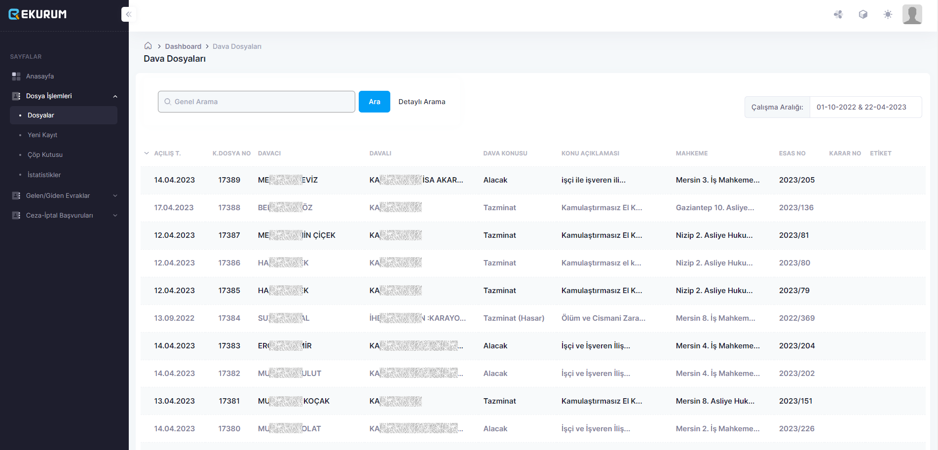 Hukuk Elektronik Doküman Arşiv Sistemi, hukuki işlemlerin elektronik olarak takip edilmesini ve saklanmasını sağlayan bir sistemdir. Elektronik Duruşma Takip Sistemi ise mahkemelerdeki duruşmaların takibini elektronik olarak gerçekleştirir ve bu sayede süreçlerin daha hızlı ve verimli bir şekilde yürütülmesine olanak sağlar. Karayolları Denetim İstasyonları Ceza Arşiv ve Evrak Kayıt Sistemi ise kurum içerisinde trafik cezalarının elektronik olarak kaydedilmesini ve saklanmasını sağlar. Detaylar için iletişime geçiniz.